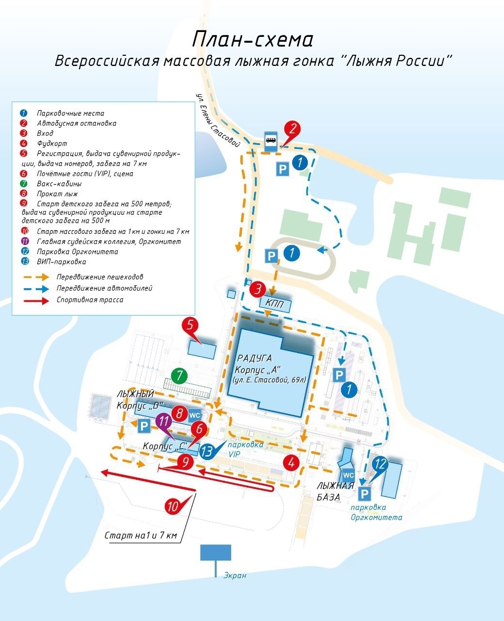 Всероссийская массовая лыжная гонка «Лыжня России», посвященная Году единства народов России, в нашем городе пройдет 14 февраля на территории многофункционального спортивного комплекса «Радуга» (ул. Елены Стасовой, 69л).Соревнования пройдут на трех дистанциях:- 500 м - дети от 4 до 7 лет;- 1 км - массовый старт для всех желающих от 8 лет и старше;- 7 км - мужчины и женщины от 16 лет и старше.Для участия в забегах на 500 м и 1 км необходимо зарегистрироваться через портал «Госуслуг» по ссылке. !!!УЧАСТИЕ БЕСПЛАТНОЕ!!!Тем, кто решит преодолеть дистанцию 7 км, необходимо пройти онлайн регистрацию до 20:00 12 февраля на сайте krasmarafon.ru, а также оплатить стартовый взнос и предоставить медицинскую справку.Участники младше 18 лет, а также инвалиды и участники СВО смогут принять участие в гонке бесплатно при предоставлении подтверждающих документов. От лыжников до 18 лет необходимо согласие родителя на участие в соревнованиях.Заявки на бесплатное участие отправляются на почту: csk_reg@mail.ru.Программа мероприятия:13 февраля:10:00-20:00 - выдача номеров на 7 км в «Беговом центре», ул. Дубровинского 1Ж.14 февраля:08:30 - начало выдачи стартовых номеров на 7 км;10:30-12:00 - выдача стартовых номеров участникам массового забега на 1 км;11:00 - старт участников на 7 км;12:00 - церемония открытия и награждения абсолютных победителей;12:10 - старт детского забега на 500м;12:30 - старт массового забега на 1 км;13:15 - церемония награждения по возрастным группам победителей и призеров.Для участия в соревнованиях необходимо прийти со своими лыжами, либо можно будет взять напрокат (200 руб./час) в МФК «Радуга». Количество ограничено - 150 пар.Все участники гонки получат сувенирную продукцию министерства спорта Российской Федерации: нагрудный номер и шапочку.Принять участие во всероссийской акции могут как любители, так и профессионалы.До встречи на празднике лыжного спорта!