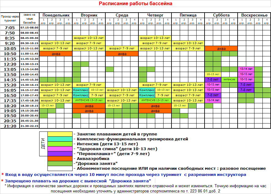 - детям с 7 до 15 лет предлагается начальное обучение плаванию в группах. За этот срок опытные инструкторы научат уверенно держаться на воде новичков, а дети, уже умеющие ,плавать, смогут усовершенствовать свои навыки.